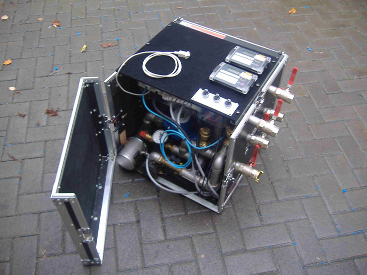 Das Gerät hat in der Grundversion Abmessungen von ca. 60x60x70 cm und ist damit ultrakompakt. Es hat eine Gewicht von ca. 30 kg und kann leicht von einer Person getragen/ bedient werden. Der Anschluss erfolgt über eine Zuleitung 32A 400V CEE.